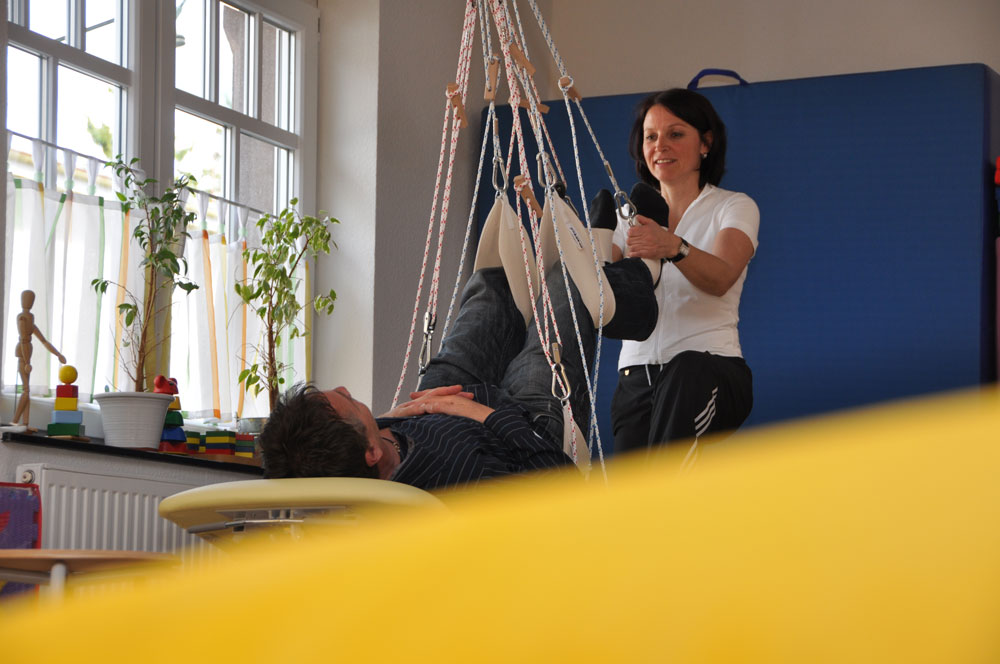 Schwebend aufgehängte Körperteile ermöglichen Schmerzlinderung für Bandscheiben, Rücken und Gelenke. Es erfolgt eine Entlastung sowie eine Verbesserung der Beweglichkeit und Kräftigung der Muskulatur ohne Einfluss der Schwerkraft.